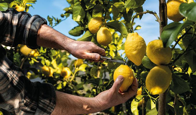 „Kennst Du das Land, wo die Zitronen blühn … ?“ Goethes sehnsuchtsvolle Worte rufen sofort Bilder sonnendurchfluteter Zitronenhaine auf – an der italienischen Amalfiküste, auf Sizilien oder in Spanien. In diesen Regionen am Mittelmeer herrscht ein gleichmäßig warmes Klima, das die aromatischen Zitrusfrüchte benötigen, um gut zu gedeihen. An der Costa Amalfitana werden sie seit vielen Generationen in ummauerten Gärten in Terrassen an der Steilküste angepflanzt. Der Anblick der Bäume mit den leuchtend gelben Früchten zwischen den Bergen und dem blauen Meer ist einzigartig. Gerade in Kampanien spielt die Zitrone in vielen köstlichen Rezepten eine Hauptrolle und ist dank ihrer gesunden und spritzigen Leichtigkeit aus der modernen Küche nicht mehr wegzudenken. Aus diesem Gebiet stammt auch der legendäre Zitronenlikör Limoncello, der aus der Zitronensorte Sfusato Amalfitano hergestellt wird.