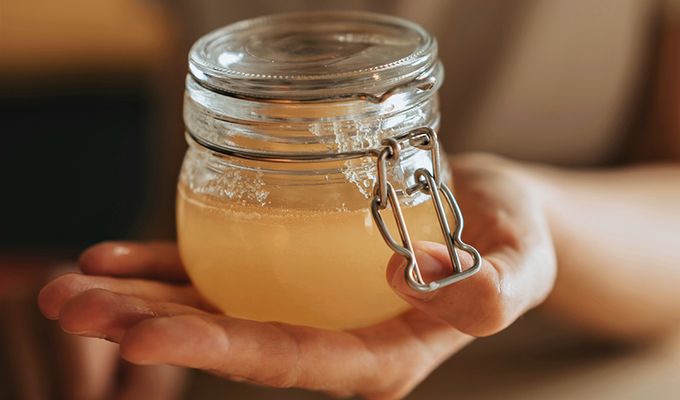 - Bei und nach der Herstellung des Sauerhonigs darauf achten, dass Sie Gefäße mit Kunststoff- oder Glasdeckeln verwenden. Die Säure im Essig greift Metall an. Wenn Sie keine geeigneten Gläser oder Flaschen haben, können Sie Frischhaltefolie zwischen die Öffnung und den Deckel legen.