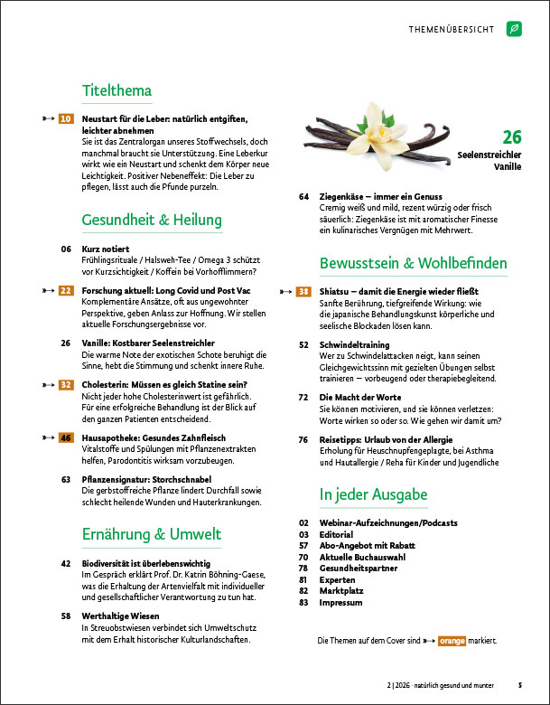 Ausgabe 2 / 2026 Neustart für die Leber – Natürlich entgiften, leichter abnehmen