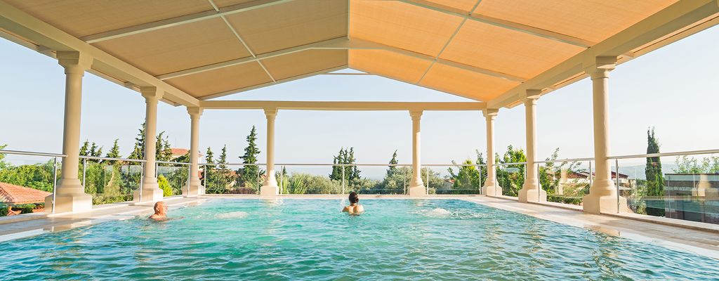 Die Seele des Kurzentrums NaturMed ist aber seine einzigartige Thermalquelle; wie wir sie in der Mineralzusammensetzung kaum in der Welt wiederfinden werden. Die vielfältige, günstige proportionale Zusammensetzung der Mineralien (ca. 30 an der Zahl) erhöht ihre Bioverfügbarkeit im menschlichen Körper und somit den therapeutischen Effekt. Die Thermalbecken werden jeden Morgen neu gefüllt und am Abend entleert. Warm-Kalt-Wechselbäder sind durch die abwechselnde Nutzung des Freibeckens „Unter dem Olivenbaum“ und „Kühle Oase“ möglich.