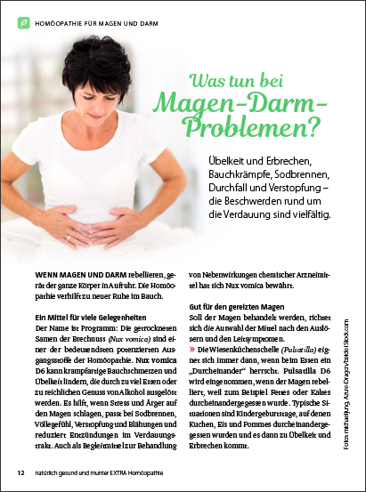 Passend eingesetzte homöopathische Arzneien helfen bei einer Vielzahl von Beschwerden. Lernen Sie in diesem natürlich gesund und munter Extra hilfreiche Globuli kennen, mit denen Sie in Selbstmedikation akute Symptome von Erkältungen und Magen-Darm-Problemen lindern können. Zudem reduzieren die Mittel Schmerzen und Beschwerden am Bewegungsapparat und sind ideal zur Ersten Hilfe nach Verletzungen. Damit gehören sie in jede Reiseapotheke.