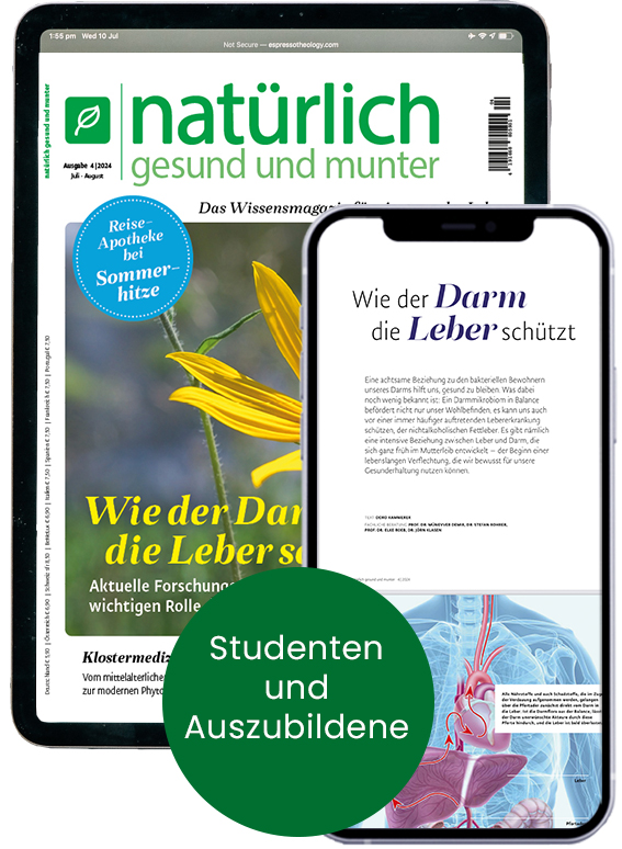 Bitte schicken Sie uns Ihre aktuelle, gültige Bescheinigung (Immatrikulationsbescheinigung, Studenten-, Schüler- oder Azubi-Ausweis) immer unaufgefordert zu, damit Sie den Vorzugspreis erhalten. Einsenden an NATÜRLICH GESUND UND MUNTER Aboservice, Postfach 81 05 80, 70552 Stuttgart. Oder per E-Mail an abo@ngum.de, oder per Fax an: 0711/7252-399.