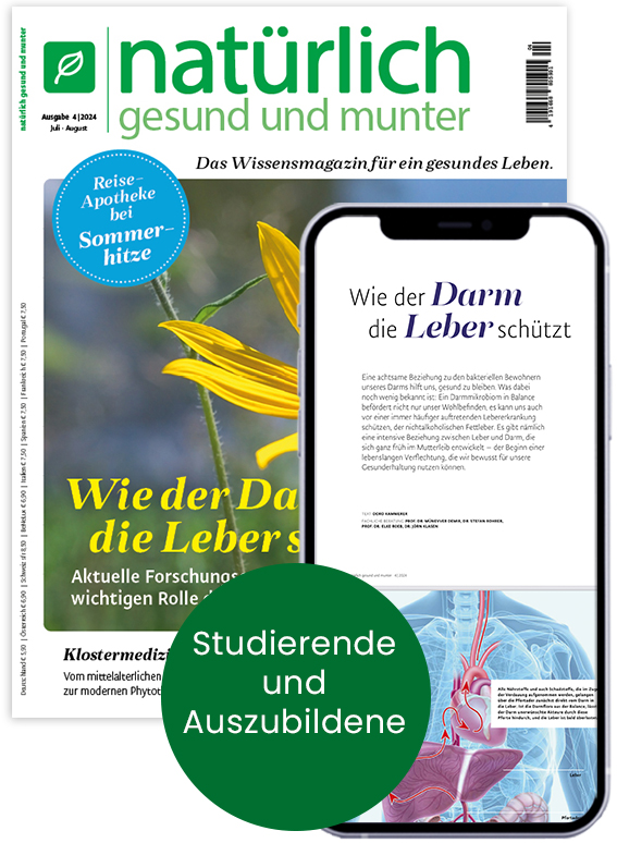 Bitte schicken Sie uns Ihre aktuelle, gültige Bescheinigung (Immatrikulationsbescheinigung, Studenten-, Schüler- oder Azubi-Ausweis) immer unaufgefordert zu, damit Sie den Vorzugspreis erhalten. Einsenden an NATÜRLICH GESUND UND MUNTER Aboservice, Postfach 81 05 80, 70552 Stuttgart. Oder per E-Mail an abo@ngum.de, oder per Fax an: 0711/7252-399.