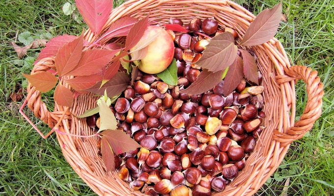 Maroni sind ein gehaltvoller, leckerer Genuss in der kalten Jahreszeit, vor allem frisch geröstet oder verarbeitet als Maronenpüree. Esskastanien sind aber auch gesund und wirken basisch auf den Stoffwechsel. Sie enthalten im Vergleich zu Nüssen nur wenig Fett, haben jedoch einen sehr hohen Kaliumgehalt und fast so viel Vitamin C wie Orangen. Mit ihrer Fülle an Ballaststoffen und komplexen Kohlehydraten eignen sie sich sehr gut als gesunde Sattmacher.