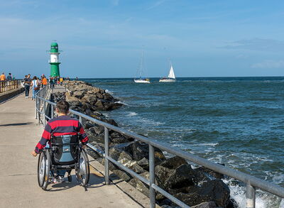 Ob an der Promenade, am Strand oder in der Tourist-Information Warnemünde – für barrierefreien Zugang ist an vielen Stellen gesorgt. In Mecklenburg-Vorpommern sind bereits mehr als 120 Angebote und Betriebe nach "Reisen für Alle" zertifiziert.