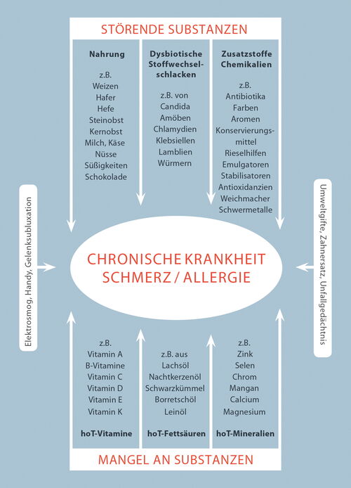 Schon bei einem latenten Nährstoffmangel, der sich oft weder laborchemisch noch klinisch klar erkennen lässt, sind die optimalen Abläufe innerhalb des Organismus nicht mehr gewährleistet. Dadurch kann der Körper bestimmten Anforderungen nicht mehr bestmöglich begegnen und wird anfälliger für akute und chronische Erkrankungen. Ein Hinweis darauf ist die Häufung von Krankheiten, die noch vor 50 Jahren selten waren. Dazu gehören Allergien ebenso wie Neurodermitis, Infektanfälligkeit genauso wie chronisch entzündliche Darmerkrankungen, Schmerzsyndrome wie durch den Körper wandernde Schmerzen, Migräne oder Rheuma, chronische Entzündungen durch Parodontitis oder auch ADHS, das Aufmerksamkeitsdefizitsyndrom, das heute so vielen Kindern, aber auch nicht wenigen Erwachsenen das Leben erschwert.