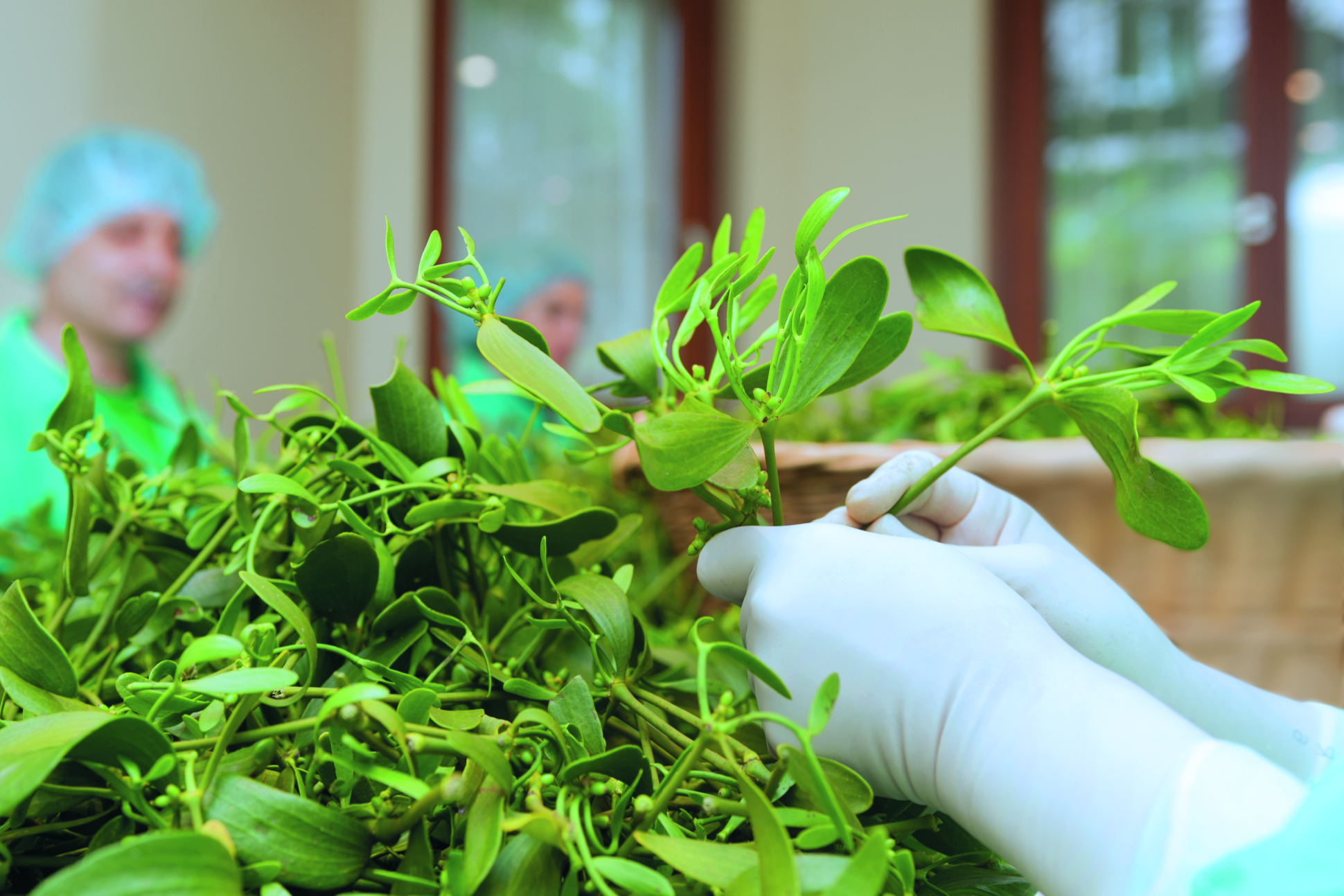 In der Erntezeit packen trotz klammen Händen im Winter und brütender Hitze im Sommer alle mit an, denn vieles im Produktionsprozess der Mistelpräparate ist von jeher pure Handarbeit: Nach dem Pflücken werden die Pflanzenteile sortiert, bevor sie zerkleinert und zu wässrigen Extrakten weiterverarbeitet werden. Auf einer eigens dafür konstruierten