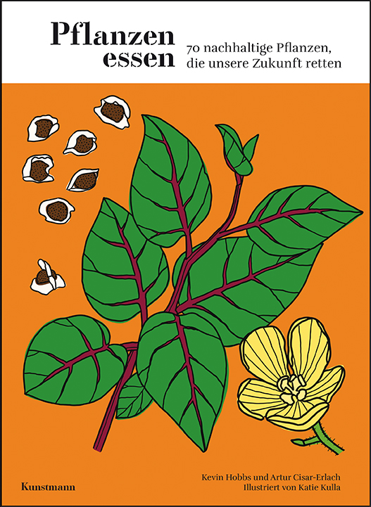 Für den mit plakativen Zeichnungen illustrierten Band Pflanzen essen haben sich der Gärtner und Pflanzenzüchter Kevin Hobbs und der Waldökologe und Experte für Lebensmittelkommunikation Artur Cisar-Erlach zusammengetan. Sie stellen 70 bekannte sowie kaum bekannte essbare Pflanzen aus aller Welt vor, die unter widrigsten Bedingungen gedeihen, Wetterextremen trotzen, die Böden verbessern und vor Erosion schützen, Kohlendioxid binden und dabei voller ursprünglicher Nährstoffe stecken.