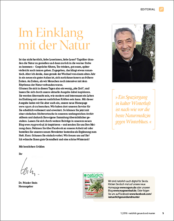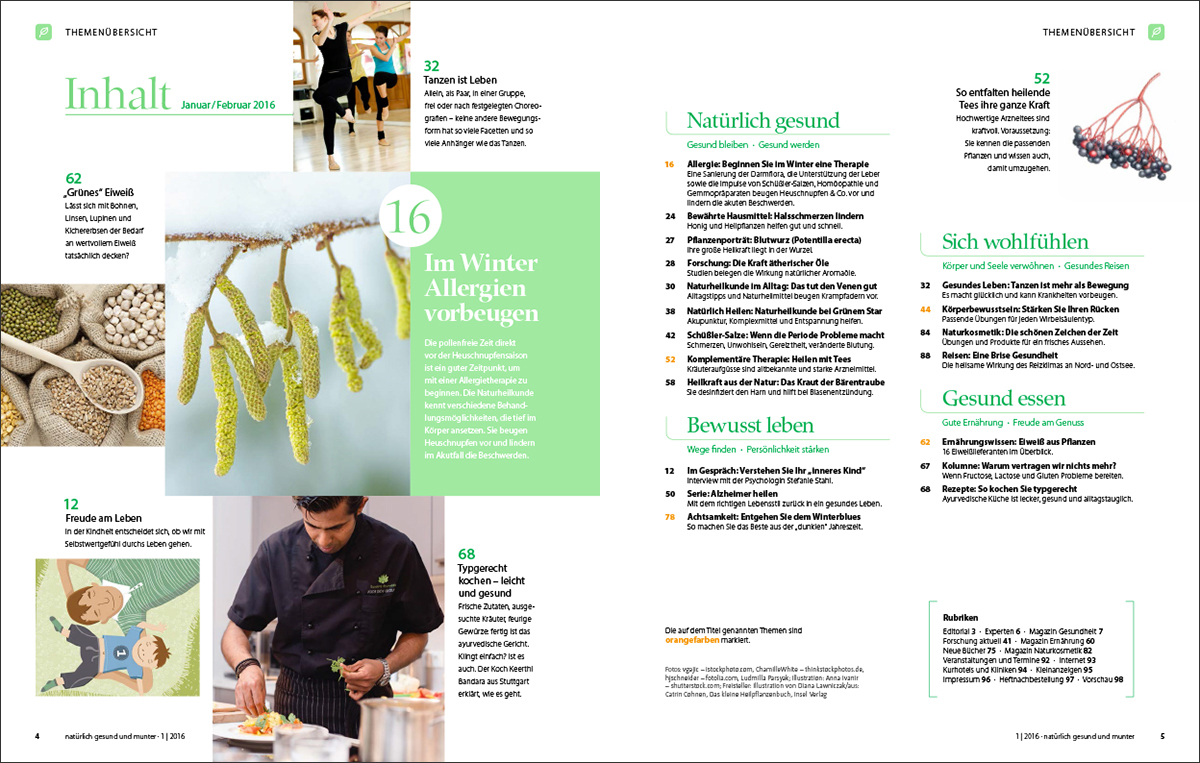 Die pollenfreie Zeit direkt vor der Heuschnupfensaison ist ein guter Zeitpunkt, um mit einer Allergietherapie zu beginnen. Die Naturheilkunde kennt verschiedene Behandlungsmöglichkeiten, die tief im Körper ansetzen. Sie beugen Heuschnupfen vor und lindern im Akutfall die Beschwerden. Wie das gehen kann, erfahren Sie in dieser Ausgabe.