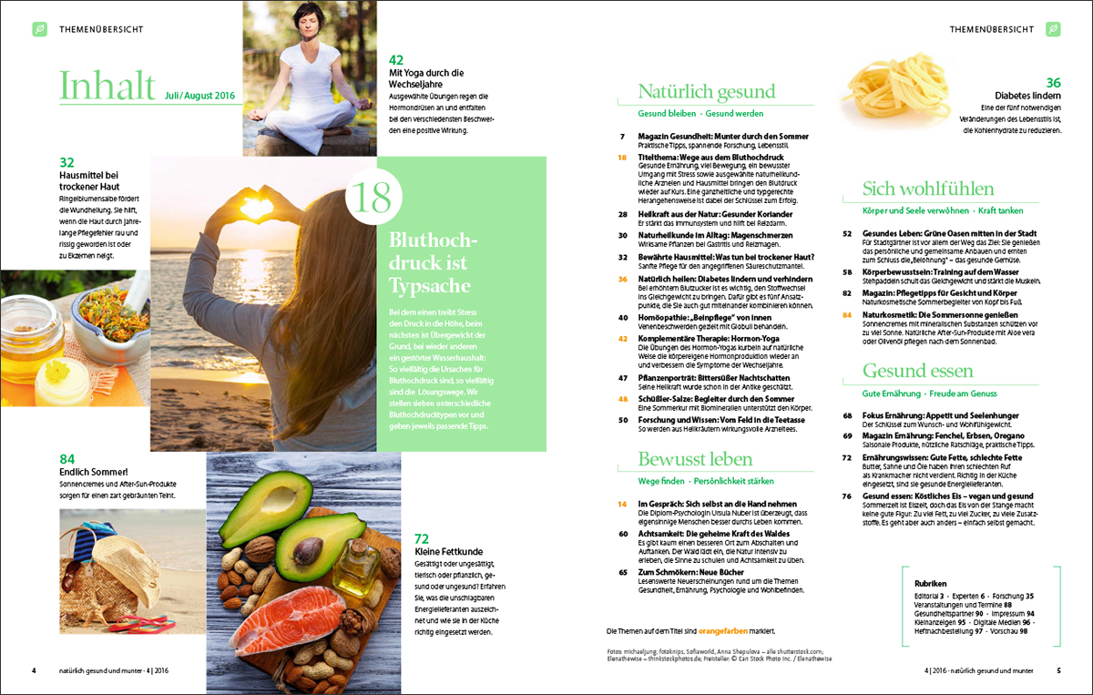 Bluthochdruck ist Typsache. Bei dem einen treibt Stress den Druck in die Höhe, beim nächsten ist Übergewicht der Grund, bei wieder anderen ein gestörter Wasserhaushalt: So vielfältig die Ursachen für Bluthochdruck sind, so vielfältig sind die Lösungswege. Wir stellen in dieser Ausgabe sieben unterschiedliche Bluthochdrucktypen vor und geben jeweils passende Tipps.