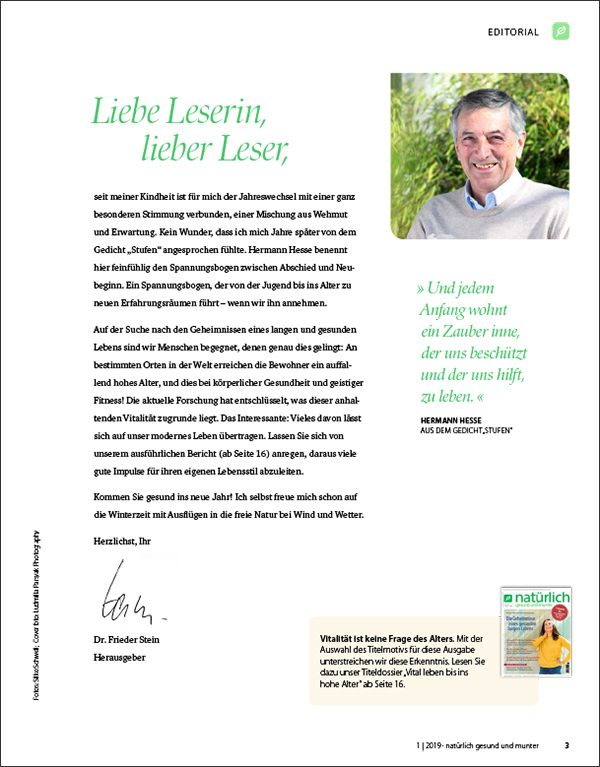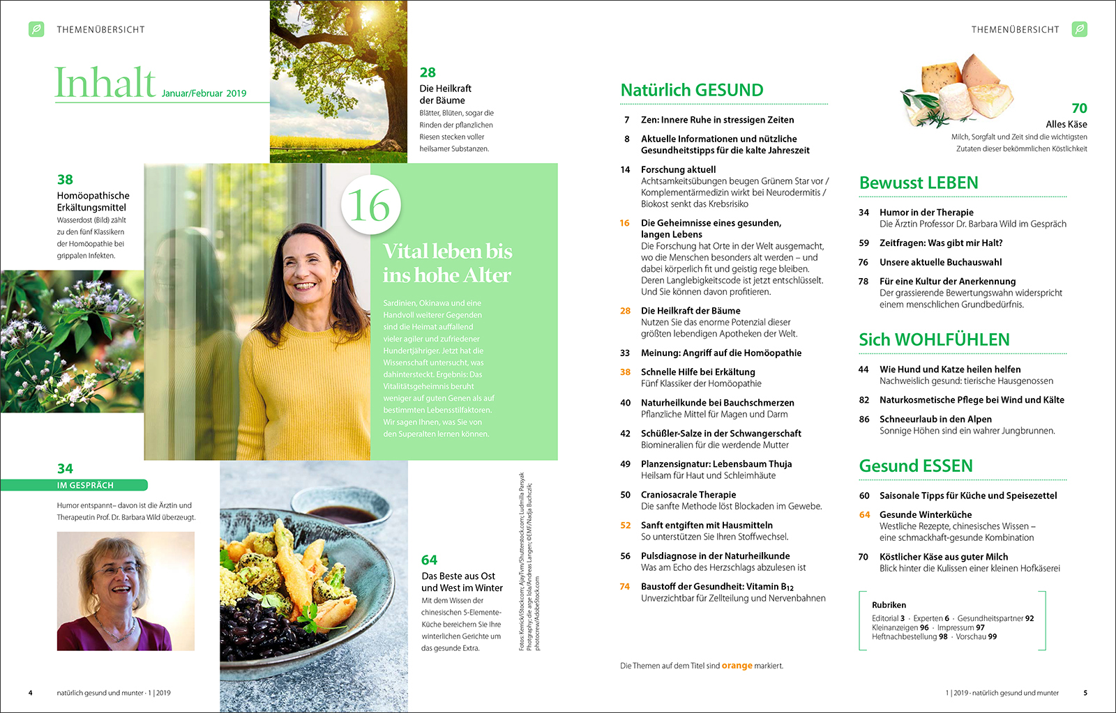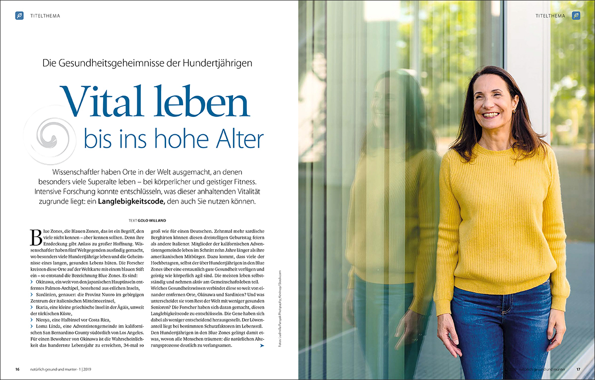 Die Forschung hat mehrere Regionen auf der Welt ausgemacht, in denen die Menschen besonders alt werden. Deren Langlebigkeitscode ist jetzt entschlüsselt. Wir sagen Ihnen in dieser Ausgabe, was Sie von den Superalten lernen können. Sardinien, Okinawa und eine Handvoll weiterer Gegenden sind die Heimat auffallend vieler agiler und zufriedener Hundertjähriger. Jetzt hat die Wissenschaft untersucht, was dahintersteckt. Ergebnis: Das Vitalitätsgeheimnis beruht weniger auf guten Genen als auf bestimmten Lebensstilfaktoren.
