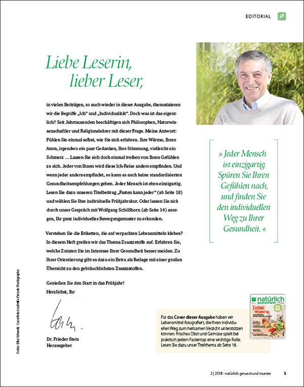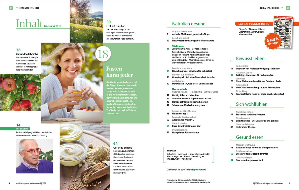 Fasten hilft dem Körper beim Aufräumen. Aber nicht jedem liegt die klassische Art des Nahrungsverzichts. Zum Glück gibt es Alternativen, unter denen Sie wählen können. Wir stellen sie Ihnen in dieser Ausgabe vor: die fünf wichtigsten Fastenmethoden.