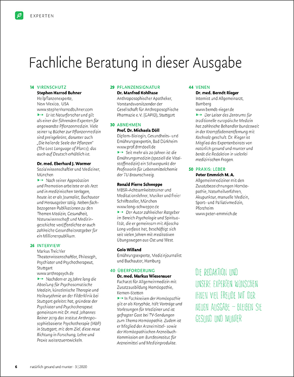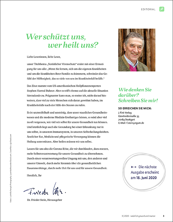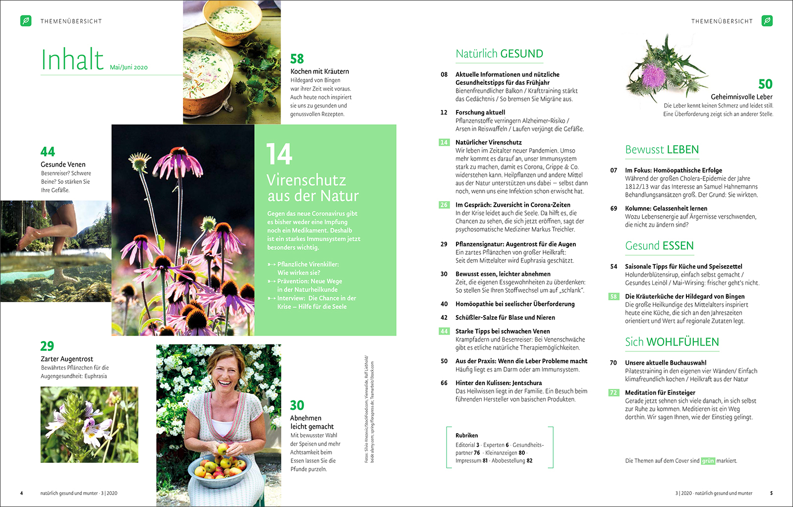 Epidemien, die unser Leben beeinträchtigen, gibt es seit Menschengedenken. Heute ist es das Virus Corona, das unser ganzes Land in den Ausnahmezustand versetzt. Was sollte man wissen? Wir geben im Titeldossier dieser Ausgabe die wichtigsten Antworten aus naturheilkundlicher Sicht.