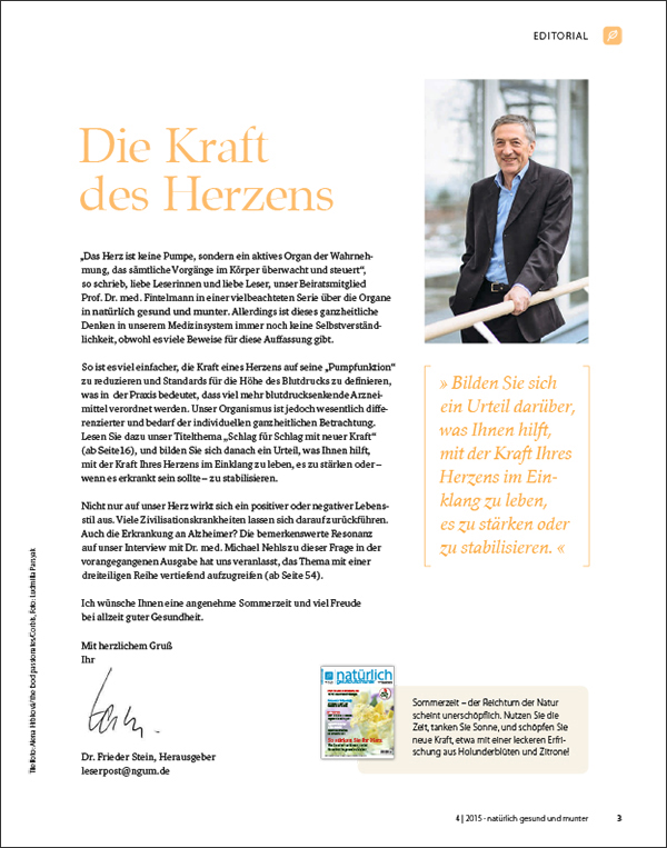 Schlag für Schlag mit neuer Kraft: Kaum etwas prägt die Gesundheit des Herzens so sehr wie die Lebensweise. Sie kann es stärken und in seiner Funktion unterstützen oder aber dazu führen, dass es schwach und krank wird. Ganzheitliche Lebens- und Behandlungsansätze helfen dabei, herzgesund zu werden und zu bleiben.