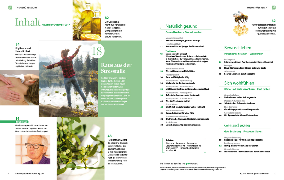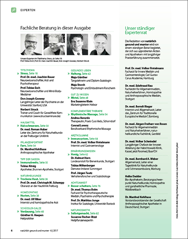 Stress entsteht im Kopf: Denn oft sind es keine äußeren Schwierigkeiten, sondern die eigenen Gedanken und Einstellungen, die uns unter Druck setzen. Das kann sogar körperlich krank machen. Wie Ihnen neue Erkenntnisse der Neurowissenschaft dabei helfen können, der Stressfalle zu entkommen, lesen Sie in dieser Ausgabe.