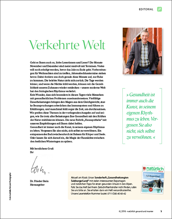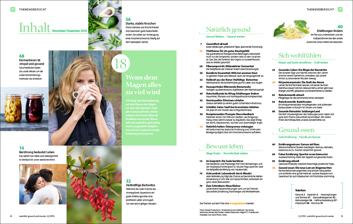 Bringen Stress und Dauerbelastung den Magen aus dem Gleichgewicht, gilt es herauszufinden, welche äußeren und inneren Reize die Probleme verursachen. Wie Reizmagen ursächlich behandelt werden kann und wie ausgewählte Heilpflanzen und eine magenschonende Ernährung die Symptome lindern können, erfahren Sie in dieser Ausgabe.