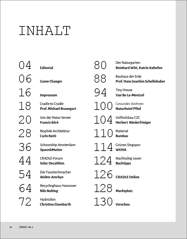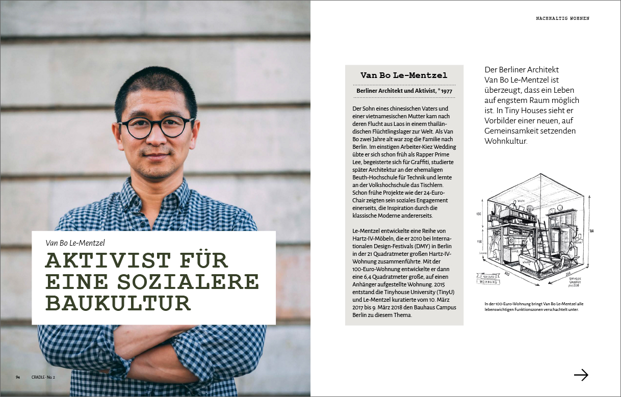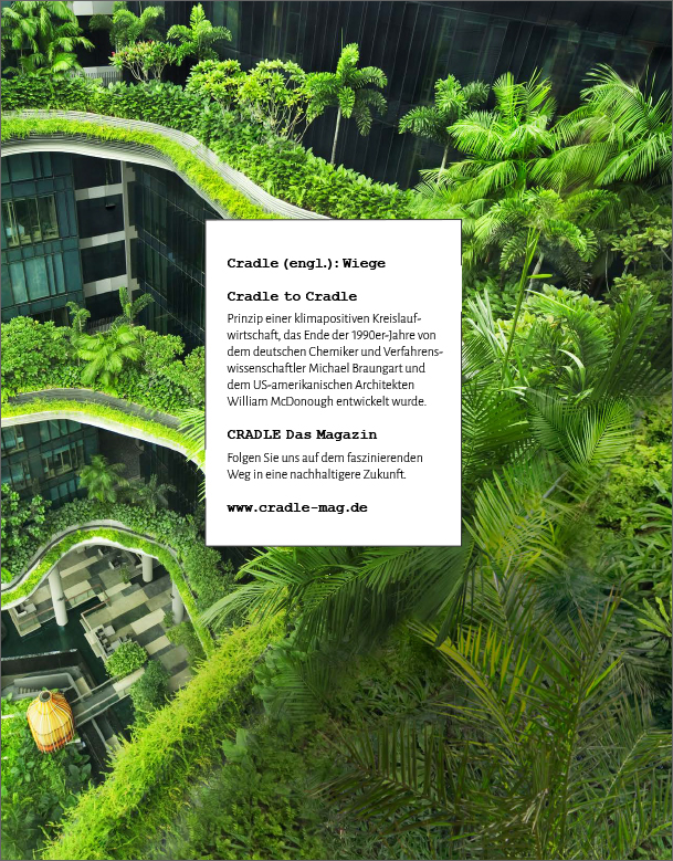 Mehr Ideen für nachhaltige Lösungen in den Bereichen Bauen, Wohnen und Design finden Sie im Onlineportal www.cradle-mag.de.