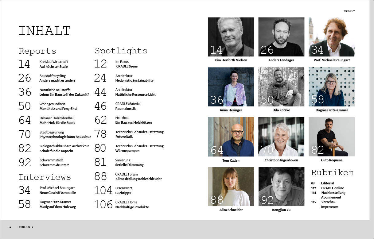 Mehr Ideen für nachhaltige Lösungen in den Bereichen Bauen, Wohnen und Design finden Sie im Onlineportal www.cradle-mag.de.